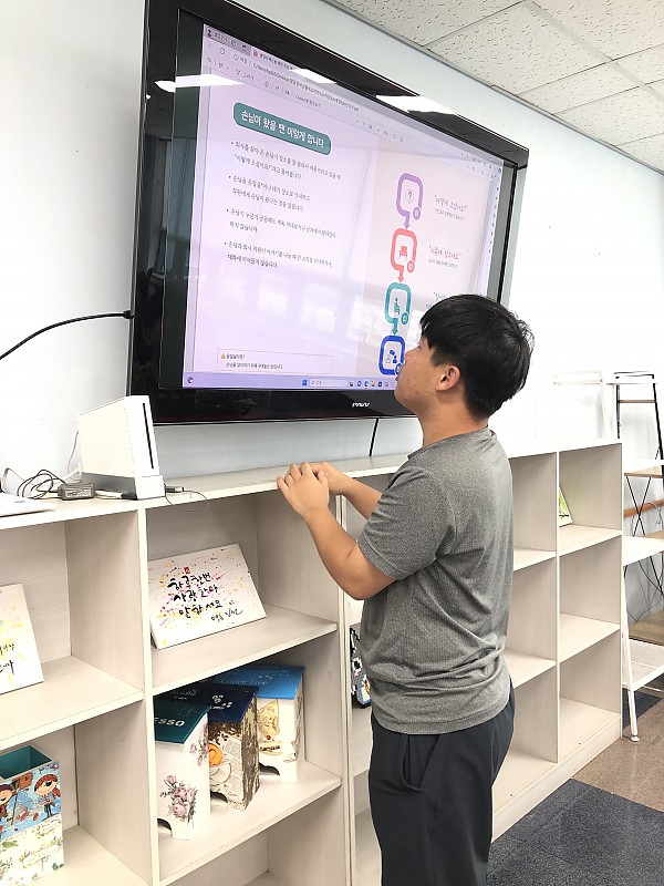 2024년 7월 직업준비프로그램 페이지 정보 작성자 관리자 작성일24-08-13 10:00 조회1,677회 댓글0건 이전글 다음글 목록 본문 직업준비프로그램으로 '손님이 왔을 때 이렇게 합니다'를 학습해 봤습니다. 이전글 다음글 목록
