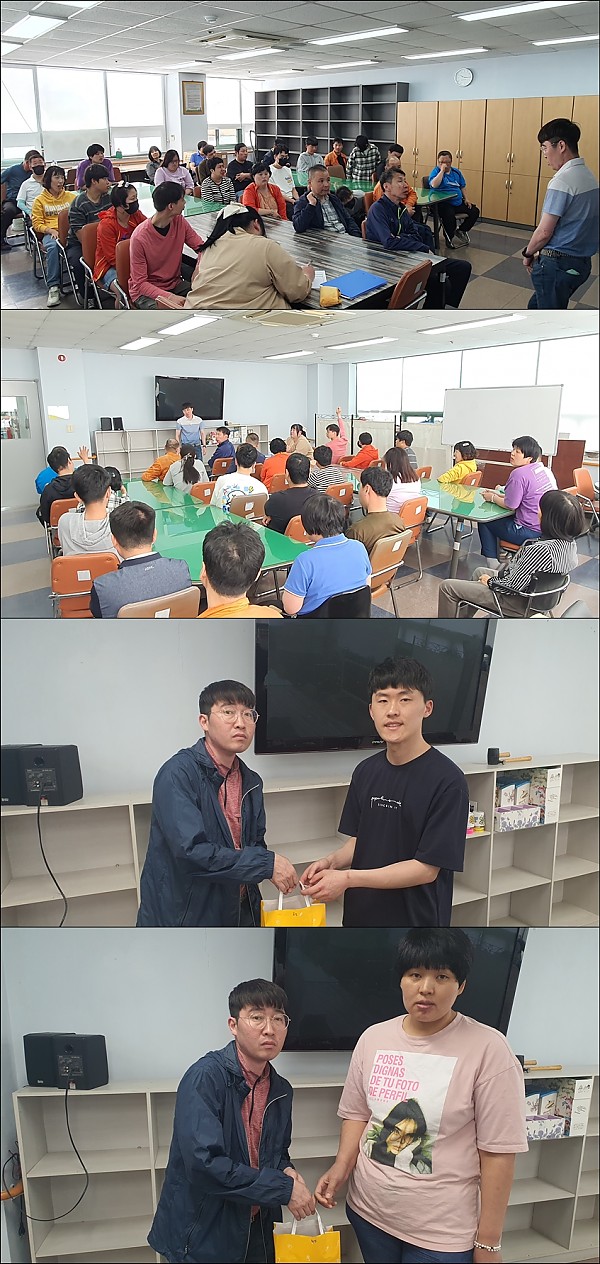 4월 이용인 자조모임 페이지 정보 작성자 관리자 작성일24-05-07 17:51 조회2,407회 댓글0건 이전글 다음글 목록 본문 이번 시간에는 센터 생활에 있어서 고충과 고민을 함께 해결하고 4월 생일을 맞이하는 이용인을 축하하는 자리를 마련하였습니다. 이전글 다음글 목록
