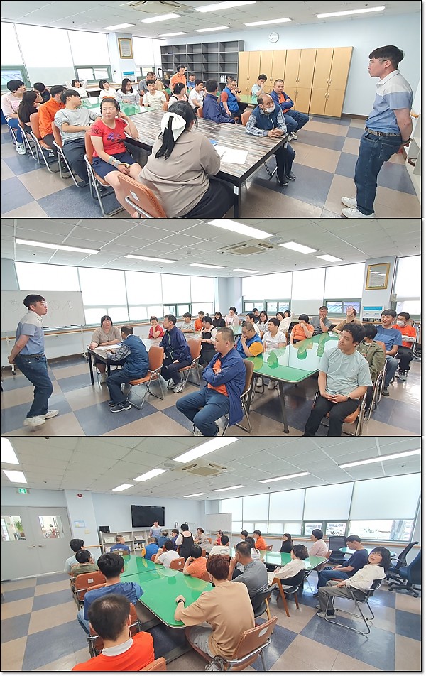 이용인 자조모임 페이지 정보 작성자 관리자 작성일24-06-07 17:05 조회2,238회 댓글0건 이전글 다음글 목록 본문 직장 생활에 있어 고민, 고충이 있으면 자조모임에서 해결해 나가고 있습니다. 먹고 싶은 식단이나 간식도 논의하여 익월에 제공할 수 있도록 하고 있습니다. 이전글 다음글 목록