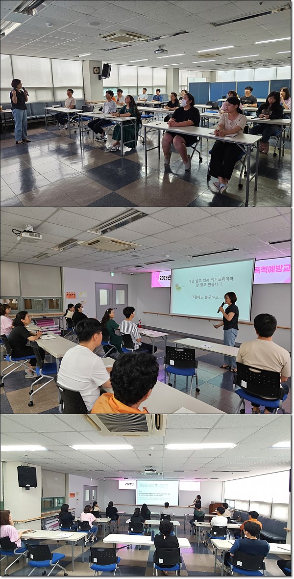 종사자 성폭력예방교육 페이지 정보 작성자 관리자 작성일23-08-14 15:50 조회2,735회 댓글0건 이전글 다음글 목록 본문 성폭력에 관하여 우리가 몰랐거나 놓쳤던 부분을 배워가는 시간이 되었습니다. 이전글 다음글 목록