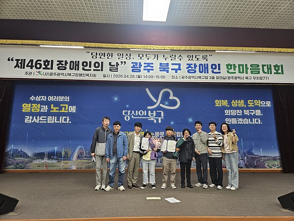제46회 장애인의날 수상 페이지 정보 작성자 관리자 작성일26-04-20 17:23 조회33회 댓글0건 다음글 목록 본문 제46회 장애인의날을 맞이하여 센터 이용인 두분이 북구청장상, 북구의회의장상을 받으셨습니다. 많은 축하바랍니다. 다음글 목록
