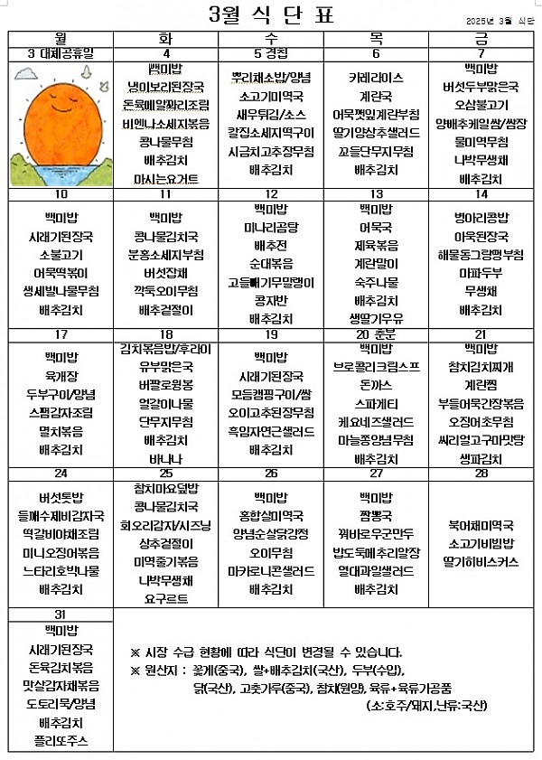 3월에도 2월 자조모임 희망 메뉴, 간식을 최대한 반영해봤습니다.