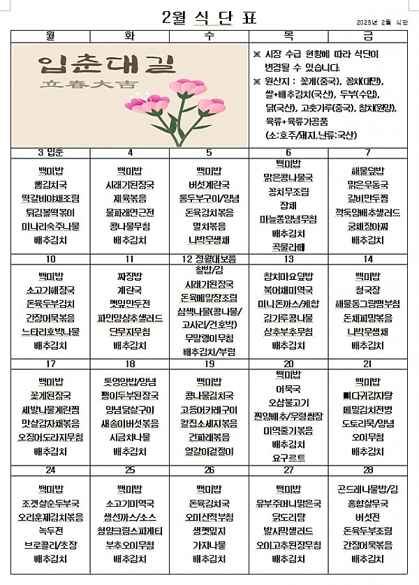 입춘으로 시작하는 2월에도 맛있게 먹고 힘내서 열심히 일하겠습니다. ^^