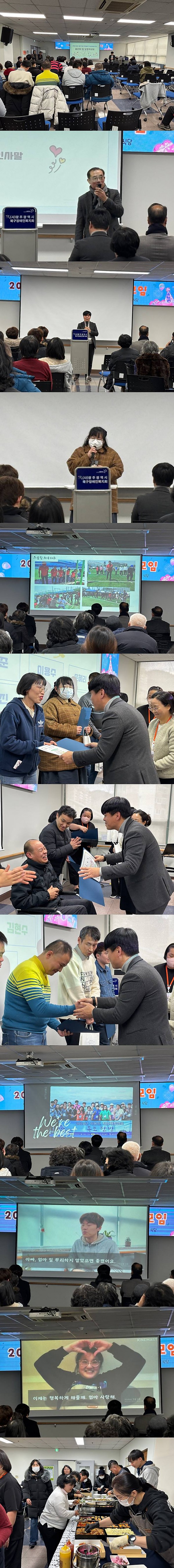24년 한해동안의 사업들에 대해 영상으로 보고하고, 우수직원들에게 표창상을 수여하고