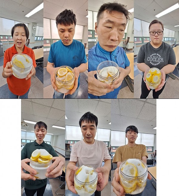 담금통 안에 레몬, 흰설탕을 켜켜이 넣으면서 레몬청을 완성했습니다. 설탕이 다 녹을 때까지 청이 완성되는데까지 몇 일의 시간이 더 소요되었습니다. ^^