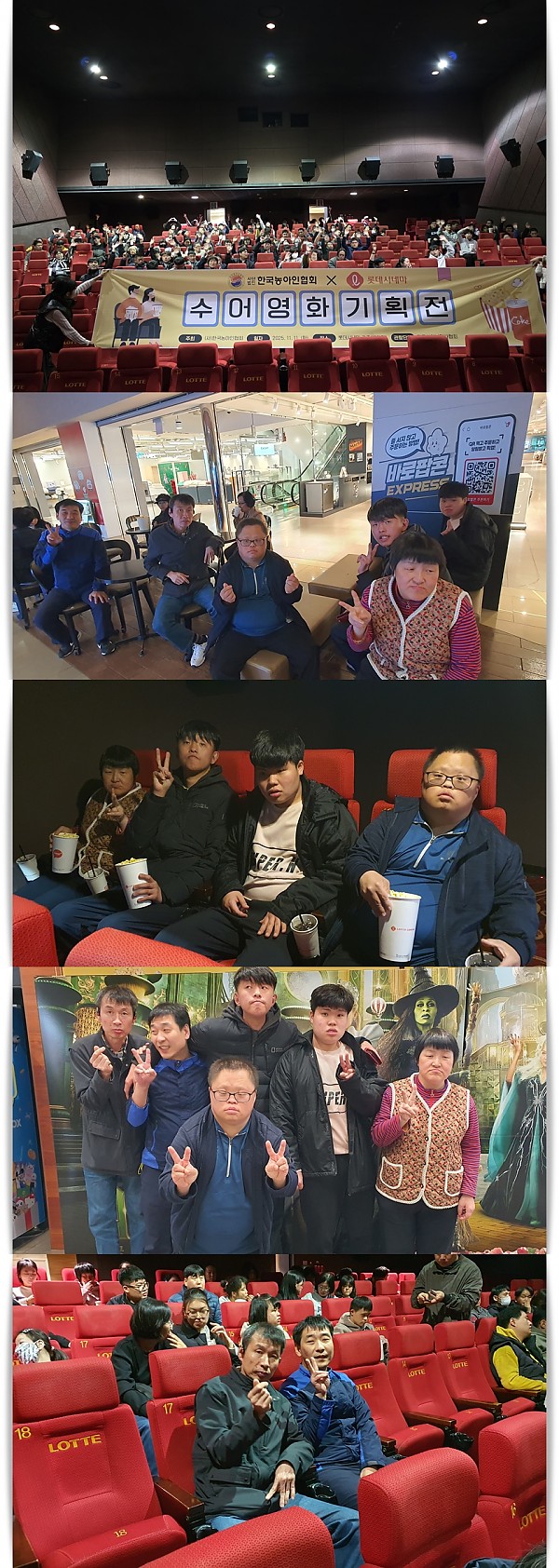 수어영화 관람(롯데시네마) 페이지 정보 작성자 관리자 작성일25-12-08 11:46 조회89회 댓글0건 이전글 다음글 목록 본문 11월 11일 광주 롯데백화점에 위치한 롯데시네마에서 수어영화 관람을 다녀왔습니다. 광주지역 장애인들과 함께 즐겁게 영화관람하고 왔습니다.^^ 이전글 다음글 목록