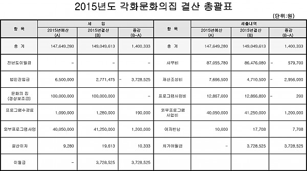 2015년 각화문화의집 결산 공고 페이지 정보 작성자 배지연 작성일16-02-17 15:50 조회8,254회 댓글0건 이전글 다음글 목록 본문 2015년 각화문화의집 결산을 공고 합니다. 이전글 다음글 목록