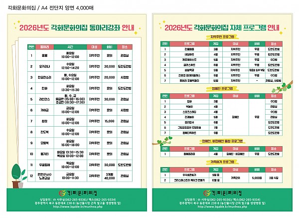 26년도 동아리활동 및 프로그램 안내 페이지 정보 작성자 정관용 작성일26-01-16 17:02 조회813회 댓글0건 이전글 다음글 목록 본문 26년도 동아리 전체 활동 안내 및 프로그램 안내합니다. 이전글 다음글 목록