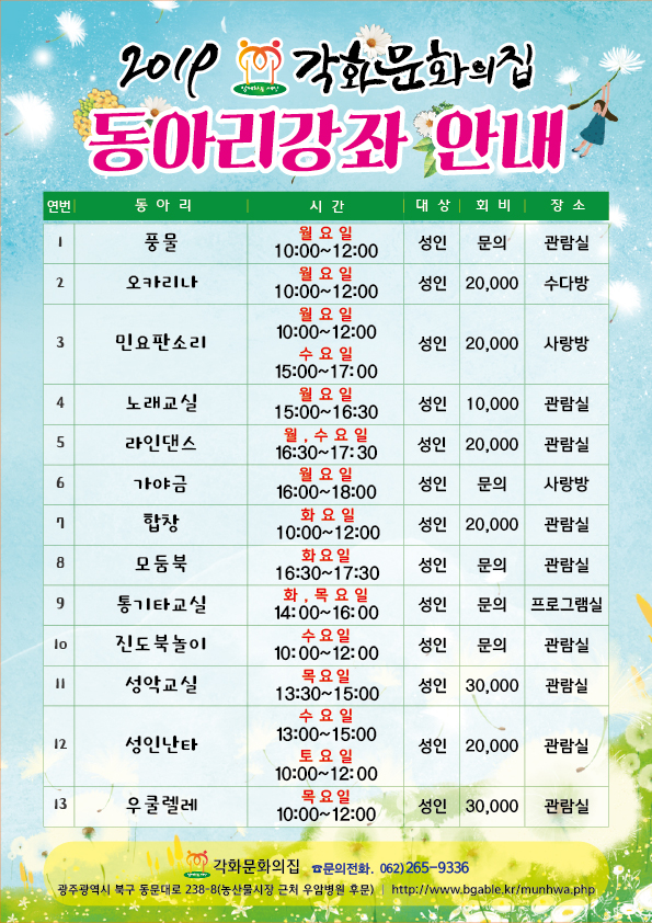 2019 동아리강좌 및 자체프로그램 안내 페이지 정보 작성자 정관용 작성일19-01-21 13:38 조회5,083회 댓글0건 이전글 다음글 목록 본문 2019년도 동아리프로그램 및 자체프로그램 안내합니다. 이전글 다음글 목록