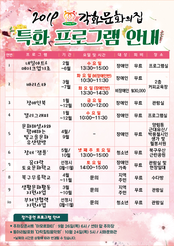 19년 장애인특화프로그램 안내 > 장애인특화 | 광주북구장애인직업재활센터 이룸광고 현수막 기념패 중증장애인생산품