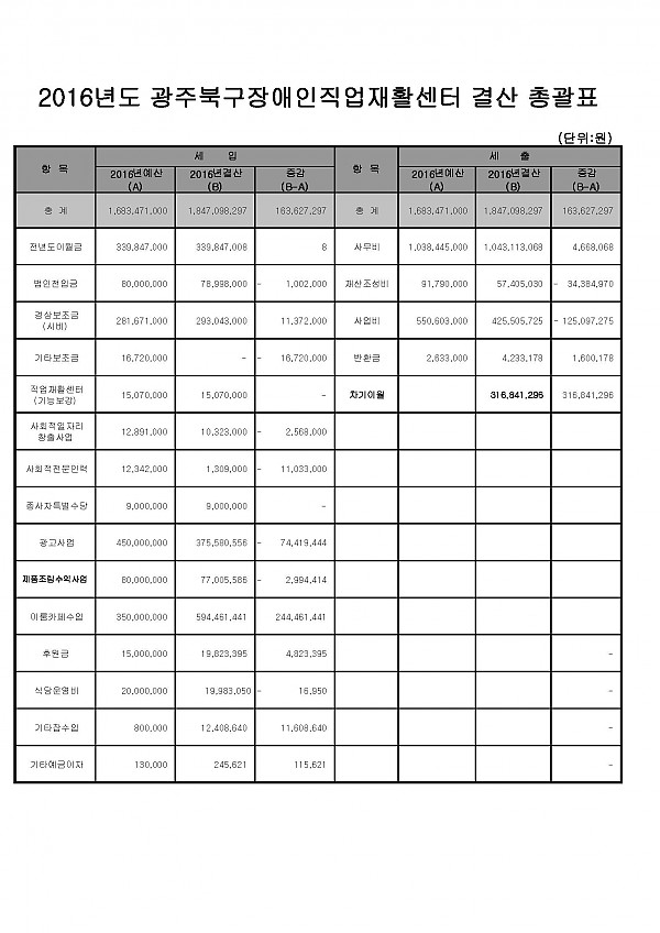 2016년도 광주북구장애인직업재활센터 결산 공고 페이지 정보 작성자 배지연 작성일17-05-10 18:58 조회11,649회 댓글0건 이전글 다음글 목록 본문 2016년도 광주북구장애인직업재활센터 결산에 관하여 다음과 같이 공고 합니다. 이전글 다음글 목록