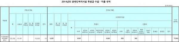 2014년 후원금 수입 및 사용내역 결과 공고 페이지 정보 작성자 배지연 작성일15-03-13 11:43 조회11,458회 댓글0건 이전글 다음글 목록 본문 2014년 광주북구장애인직업재활센터 후원금 수입 및 사용내역 결과를 공고합니다. 이전글 다음글 목록