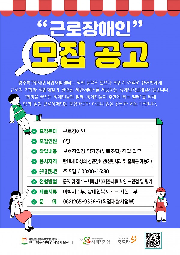 위의 공고와 같이 센터에서 함께 일할 근로장애인을 모집하오니