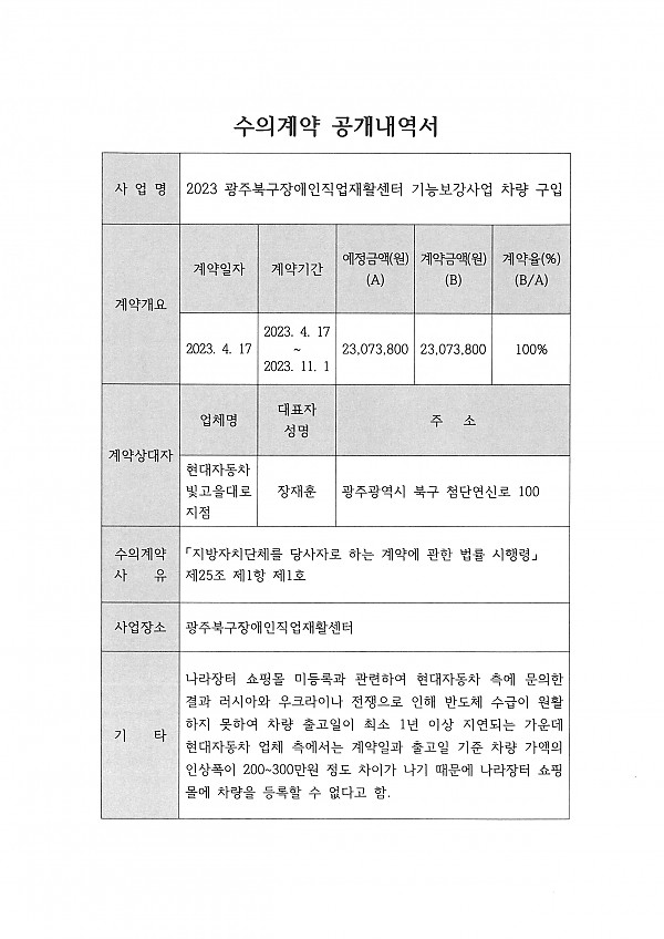 2023 기능보강사업 장비보강 수의계약 공개내역 페이지 정보 작성자 관리자 작성일24-05-10 10:13 조회8,793회 댓글0건 이전글 다음글 목록 본문 2023 기능보강사업 장비보강 수의계약 공개내역 이전글 다음글 목록