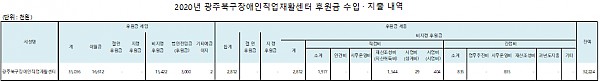 2020 광주북구장애인직업재활센터 후원금 수입 및 사용내역 페이지 정보 작성자 관리자 작성일21-03-24 14:07 조회10,292회 댓글0건 이전글 다음글 목록 본문 사회복지법인 및 사회복지시설 재무․회계규칙 제41조의 6의 규정에 의거하여 2020 광주북구장애인직업재활센터 후원금 수입 및 사용 내역을 다음과 같이 공개합니다. 이전글 다음글 목록