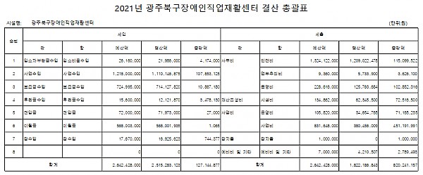2021 광주북구장애인직업재활센터 결산 공고