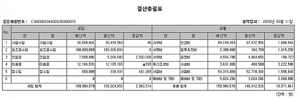 2. 공고사항 : 2024년 각화문화의집 세입·세출 결산