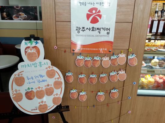 누군가가 다른 누군가를 위해 커피나 음료, 음식값 등을 미리 여유 있게 선불로 계산하는 방식이다. 지인이나 이웃들과 따뜻한 마음을 나누고 함께 사는 세상을 만드는 일종의 도시적 ‘공유문화’인 셈이다. 광주시청의 경우 지난 16일부터 북구장애인직업재활센터가 운영하는 1층 ‘이룸카페’에 까치밥 홍시가 내걸리기 시작했다. 이 곳을 찾는 공무원과 민원인은 ‘OO과 OOO님. 팥빙수 한 그릇’하는 형식으로 특정인을 정하거나 일면식도 없는 불특정 다수를 위해 비용을 먼저 지불한 뒤 종이로 만든 홍시를 카페에 붙이거나 걸어둔다. 그러면 해당자가 혜택을 받은 뒤 홍시 뒤에 고마움의 글을 남기거나 마땅히 쌈짓돈이 없는 제3자가 내걸린 홍시를 따내 음료 등의 값으로 지불하고 있다. 불과 1주일 밖에 안됐지만 장애우들이 일하는 이룸카페에는 그동안 50여개가 넘는 홍시가 내걸려 온정을 나눴다. 광주지역에서는 이룸카페를 포함해 30여개 업소가 까치밥 홍시 제도에 흔쾌히 참여하고 있다. 뿐만 아니라 업종도 카페에서 식당, 미용실, 안경원, 제과점, 병원 등으로 다양하게 확산되는 추세를 보이고 있다.